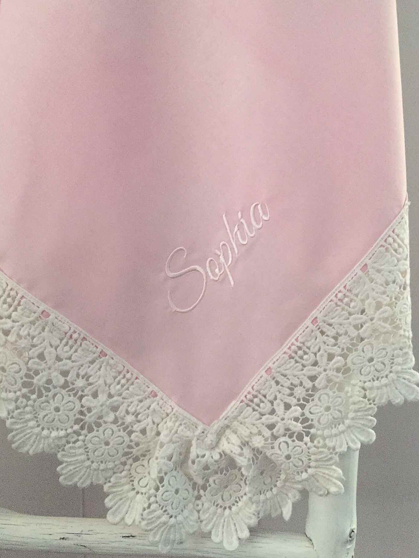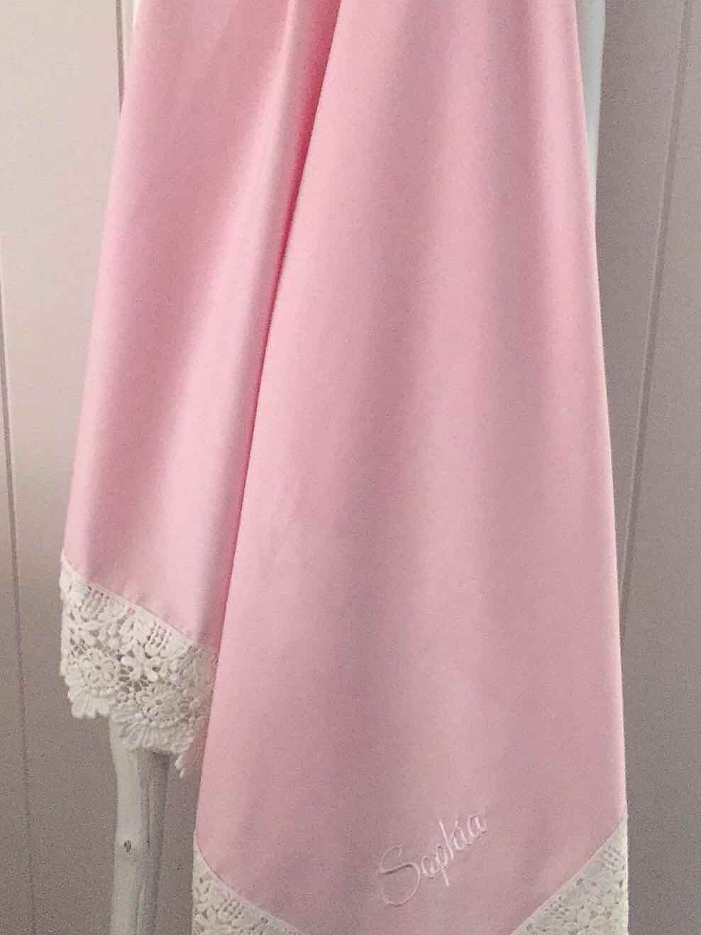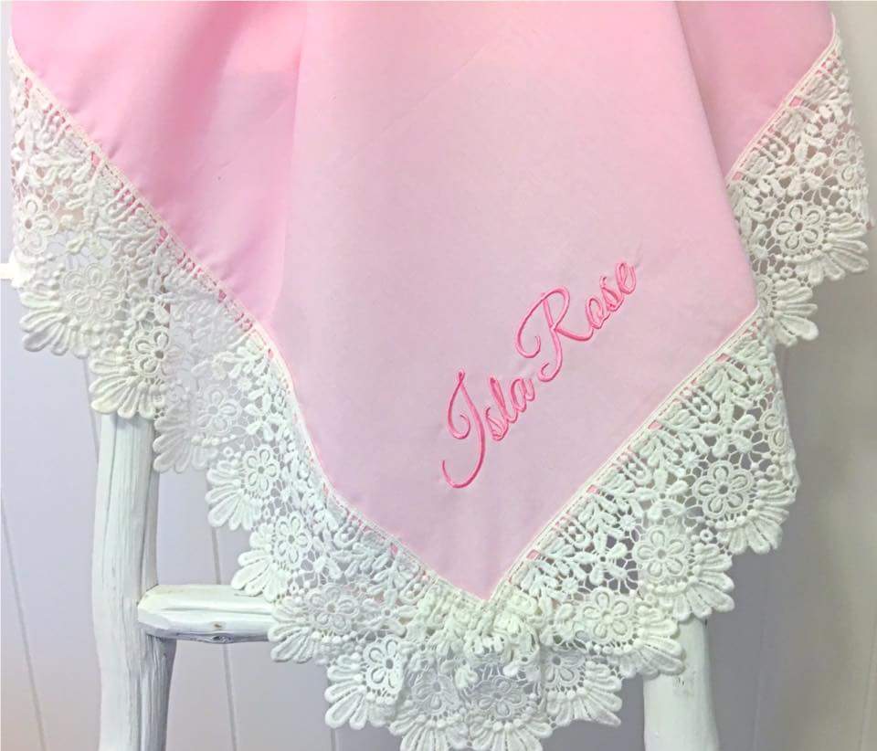 Our Bespoke Classic Pink Lace Swaddle Wrap encased in Daisy Drop Lace is divine simplicity and elegance.