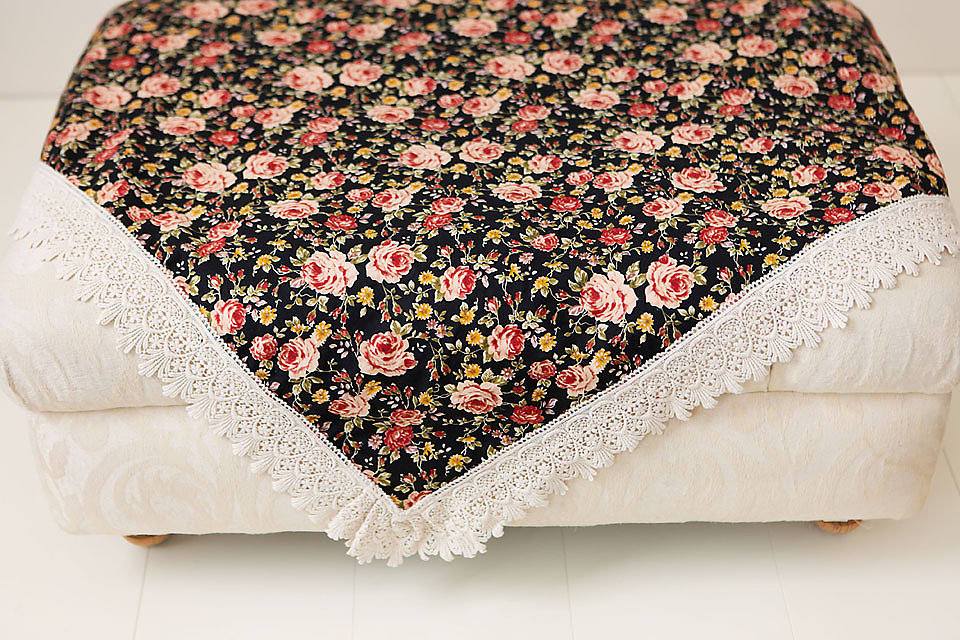 Our Bespoke Night Garden Wrap featuring antique lace takes you to a moonlight walk in the garden with roses in full bloom.
